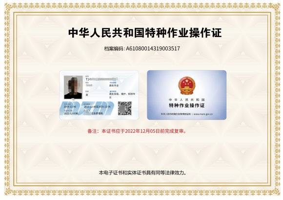 新版特種作業操作證分為:PVC卡實體證書、電子證書,PVC卡實體證書根據申請人現實需要發放,電子證書是實體證書,與實體證書具有同等法律效力。