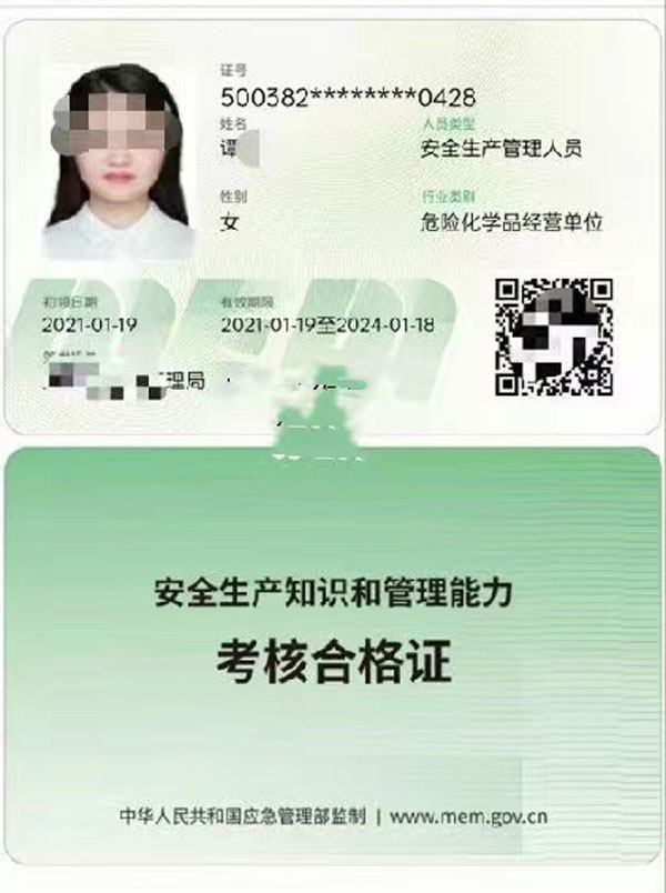 所有安全生產經營單位含(非煤礦山企業、冶金有色生產企業、危險化學品企業、非高危生產經營單位、交通運輸企業、金屬非金屬礦山企業、煤礦企業、石油天然氣作業、職業康負責人和安全生產管理人員)負責人和安全管理人員,經培訓合格后,頒發四川省應急廳統一監制的安全資格證書
