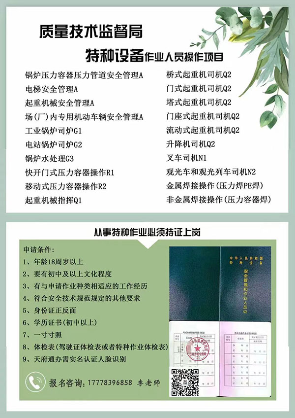 快開門式壓力容器作業是一種具有大尺寸開口結構的封閉式設備,可以裝卸設備內的物料或物體,并能承載一定的壓力。 快開門式壓力容器的操作屬于特種設備的操作。為規范作業,《特種設備監督管理條例》第三十八條規定:“特種設備作業人員應當按照有關規定,經特種設備監督管理部門考核合格,取得統一格式的特種設備作業證,方可從事相應的經營或管理工作”。 所以從事快開門式壓力容器也是需要考壓力容器證才可以的。 目前,壓力容器作業證主要分為兩類,分別是:快開門式壓力容器操作證(代號R1)、移動式壓力容器充裝證(代號R2)。從事哪種壓力容器作業,就考對應種類的壓力容器作業證即可。 壓力容器作業證,俗稱壓力容器操作證、壓力容器特種作業證、壓力容器作業操作證,由市場監督管理總局(原質檢總局)統一樣式、標準和編號,由當地市場監督管理局(原質監局)制證并頒發。