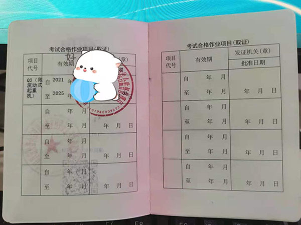 《特種設備作業證》報名:1,電梯維修T,2,起重機械管理A,3,場(廠)內專用機動車輛管理A,4,起重機指揮Q1,5,工業鍋爐司爐G1,6,鍋爐水處理G3,7,快開門式壓力容器操作R1,8移動式壓力容器充裝R2,9,氣瓶充裝P,10,特種設備安全管理A,11,起重司機(限門座式起重機)Q2,12,起重司機(限橋式起重機)Q2,13,起重司機(限門式起重機Q2,14,起重司機(限纜索式起重機Q2,15,起重司機(限塔式起重機)Q2,16,起重司機(限流動式起重機)Q2,17,叉車司機N1,18,蓄電池觀光車司機N2,從業人員上崗證特種作業證是4年一審!