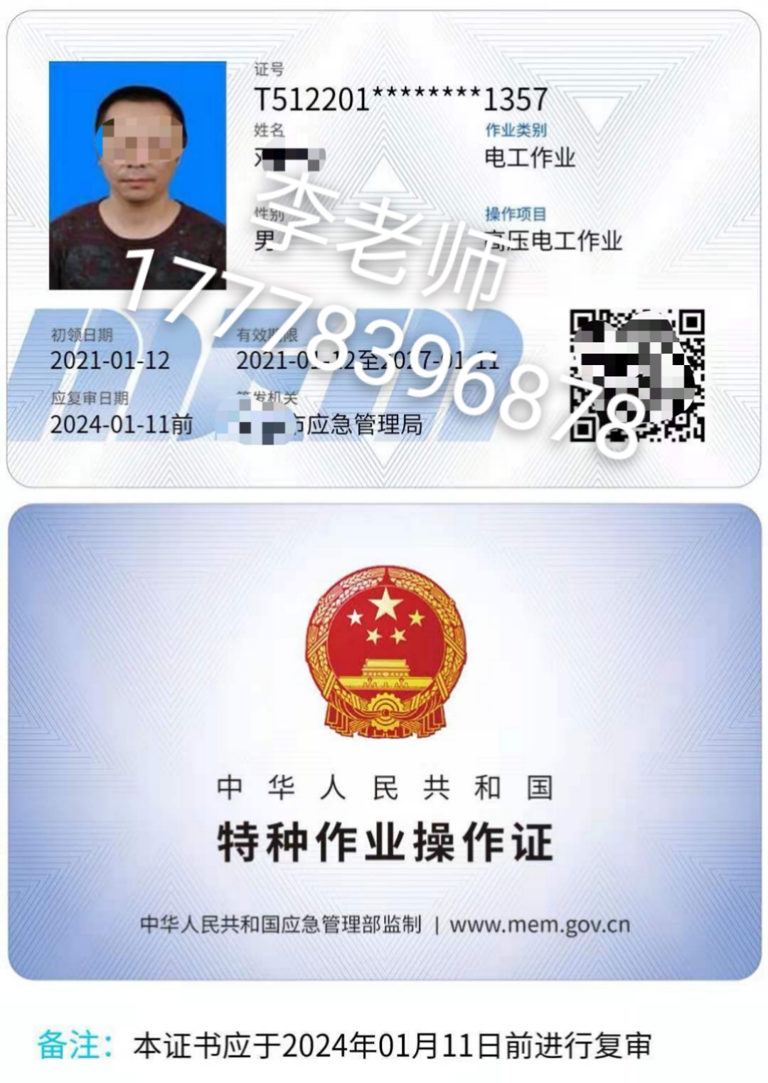 應急管理廳特種作業低壓電工證操作證